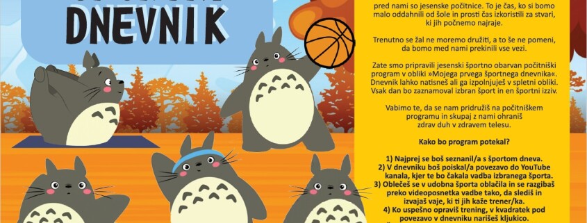 Jesenski počitniški program bo športno obarvan. Osnova programa je spletni dnevnik, t.i. »Moj prvi športni dnevnik. Pod prispevkom se nahaja povezava, kjer dnevnik lahko prelistate ter tudi natisnete.